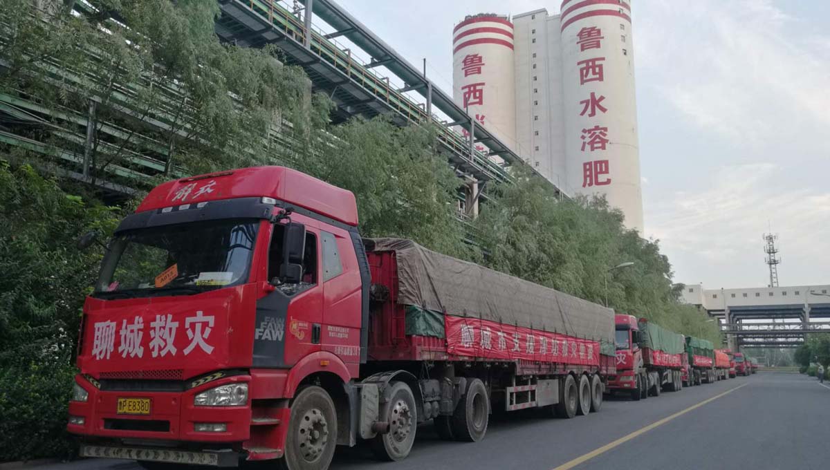 9月1日,魯西集團接到聊城市委市政府采購救災物資需求后,集團黨委迅速部署,化肥事業(yè)部全員上下高度重視,緊急協(xié)調相關部門,做好計劃下達,安排物資生產(chǎn)發(fā)運。當天下午,8輛滿載共計350噸高塔硝硫基復合肥的大貨車整齊地排成一列,車身懸掛著“聊城市支援濰坊救災物資”條幅,運往濰坊支援災區(qū)群眾迅速恢復生產(chǎn)。