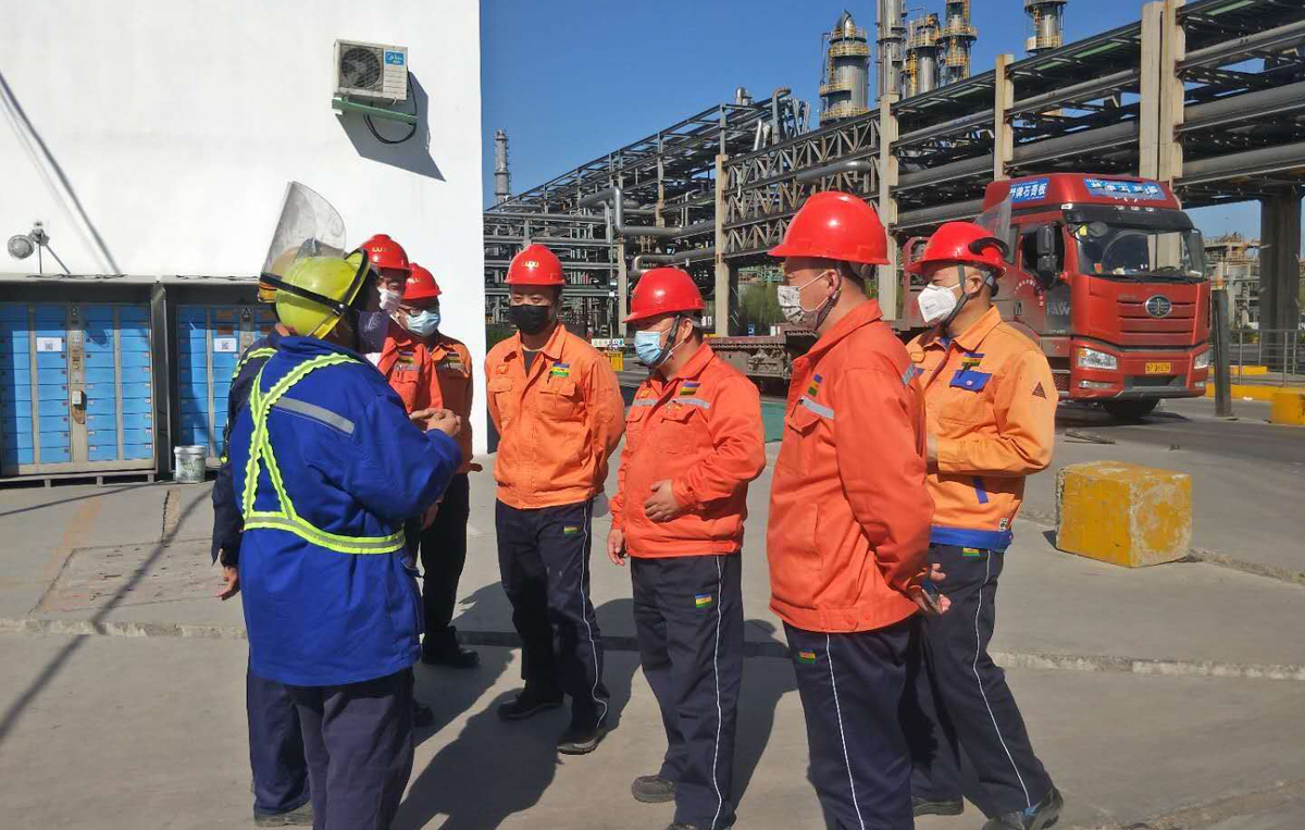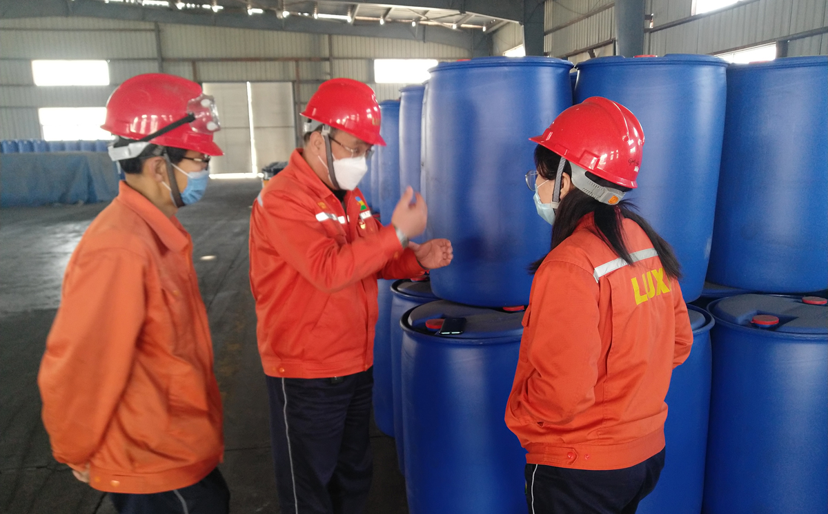 3月16日,國際貿易公司部長扈瑞祥主動到危化品包裝庫房,查看首次使用塑料桶進行灌裝甲酸的情況,并對集團LOGO的運用提出改進建議。這是針對遠洋區域客戶反饋,對前期出口某產品使用的鋼制桶改為PE桶包裝進行了改進,雖成本上稍微增加,但可以大大降低產品被二次污染的概率,提升我們的產品質量全流程管控,做好客戶的終端服務。另據扈瑞祥部長介紹:“甲酸作為直接用于牧草收割及青貯的產品,為避免甲酸液體對人身傷害事故的發生,采取直接添加食品級“胭脂紅”粉末的方式來增加辨識度。為避免粉末散落現象,國際貿易公司積極改變粉末添加方式,新訂單發運前,提前與客戶及甲酸灌裝人員溝通,將粉末按一定比例配成溶液加入包裝桶內。同時,添加節點改在拆卸包裝桶防護膜前添加,以防止添加過程中再污染包裝桶”。改進后取得較好效果,并得到客戶的高度認可。