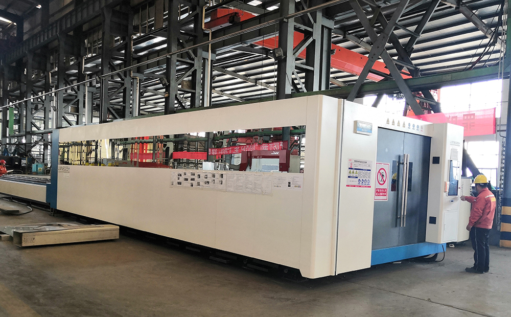 工序負責人張懷朋告訴記者:“以前,切割下料都是采用火焰切割、等離子切割等加工方式,是熱切割工藝,存在一定的局限性,有明顯的熱效應、精度低,在切縫處會引起弧痕、切渣,切割面不平整、不光滑、毛刺較多,后期修磨工作量很大,效率較低,而且產生煙塵大,不環保。下料切割時,如果板料擺放不到位、歪斜,切割的工件不合格,造成材料浪費。12000W激光切割機通過自動尋邊感知板料的傾斜角度和原點,調整切割加工程序,以適合板料的角度和位置,從而避免浪費,大大省下了早先調整工件的時間。當相鄰的工件輪廓角度相同時,則可以將加工路徑合為一條直線,合二為一,只切割一次。顯而易見,共邊切割減少了切割長度,可顯著提高加工效率,創造隱性收益。”