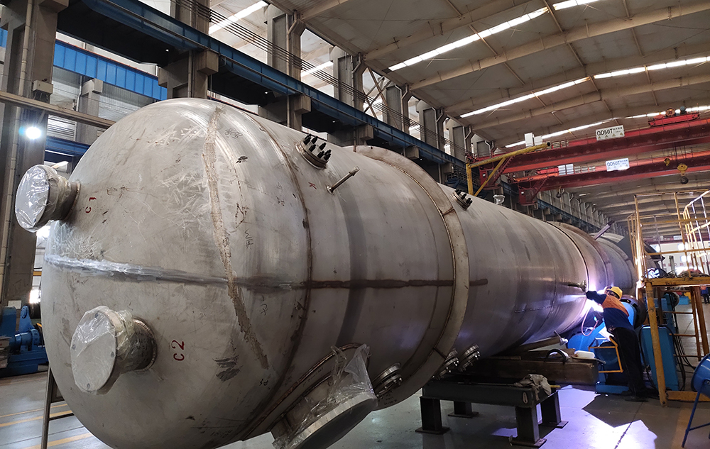 制造與工程事業集團作為項目建設主體,以質量保證體系為主線,加強過程管控,積極開展對標工作,做好學習吸收再創新。事業集團梳理確定重點對標項目36項,制定方案實施。通過對標學習,對大型蒸發冷、空冷設備制作生產線整合、改進結構,實現了流線化、模塊化生產,每月產能由450噸提升到600噸,單臺蒸發冷能耗降低了5%。塔內件制作方面通過對標學習,調整內件聯通結構,突破實現了塔內件臥裝,提升了填料層的傳質傳熱效率。氣瓶研磨通過對標學習,內壁光潔度由0.3μm提高到0.1μm以下,研磨時間由10天縮短至8天。制作質量和工作效率得到很大提升。