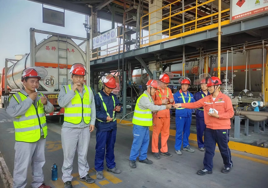 此外,為做好室外作業(yè)人員防暑工作,第三工程事業(yè)部、第四工程事業(yè)部、灌裝站針對(duì)高溫炎熱天氣紛紛開展“夏日送清涼”活動(dòng)。第三工程事業(yè)部黨支部分別在甲烷氯化物、有機(jī)硅事業(yè)部現(xiàn)場(chǎng)設(shè)置應(yīng)急聯(lián)絡(luò)點(diǎn),安排專人值班,配備對(duì)講機(jī)便于聯(lián)絡(luò),聯(lián)絡(luò)點(diǎn)放置血壓計(jì)、測(cè)溫槍、綠豆湯、以及藿香正氣液、風(fēng)油精等防暑降溫藥品,作業(yè)前值班人員首先對(duì)作業(yè)人員的體溫、血壓等情況進(jìn)行測(cè)量,建立臺(tái)賬,以便于對(duì)員工身體異常情況及時(shí)掌握。第四工程事業(yè)部、灌裝站黨支部則分別為室外員工和外來司機(jī)送去純凈水、藿香正氣液、淡鹽水等防暑物品,表示慰問的同時(shí)積極聽取大家的困難和建議,把關(guān)心和清涼送入現(xiàn)場(chǎng),送入人心。